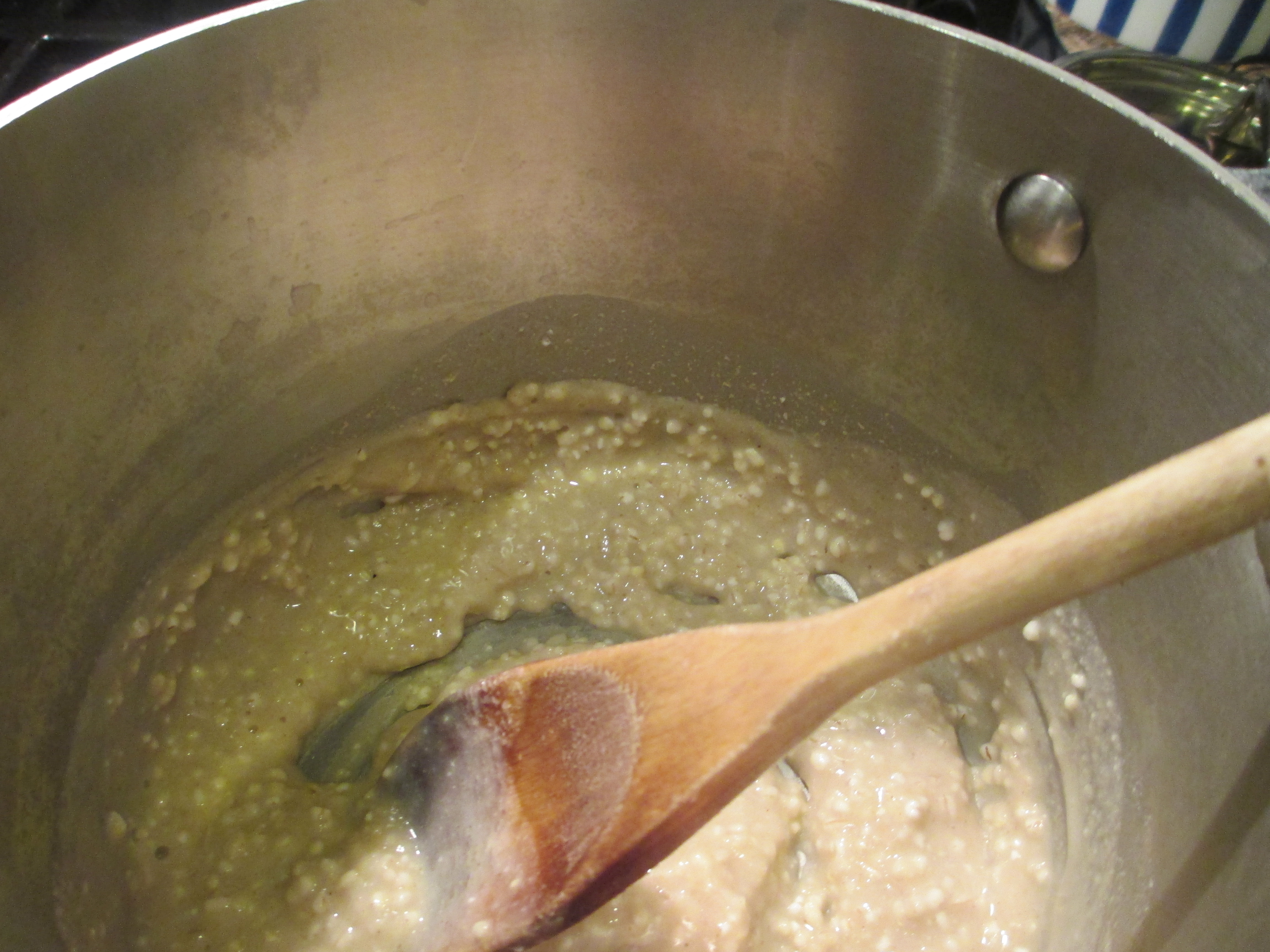 A traditional Swedish peasant porridge or gruel was my second barley endeavor. Now smart, I didn’t attempt to serve it up Oliver style to the masses.  Using ½ cup of barley groats I ground and ground and ground the blasted stuff in my food processor for what seemed like ages.  I then dumped the weird floury, steel cut-looking barley groat concoction into a pot and added only two cups of water, nothing else—no salt, no sugar, no nothing. Just water and the somewhat ground groats composed the ingredients.  It seemed a destitution recipe until I remembered adding ground tree bark constituted true deprivation for my ancestors.
